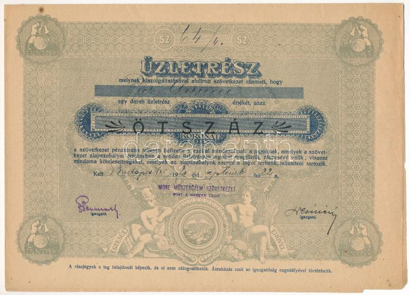 https://www.darabanth.com/en/469-Online-auction/469.0/Numismatics/Shares-and-Tickets~2000006/Budapest-1918-MONE-Muszeruzem-Szovetkezet-mint-a-Hangya-tagja-uzletresze-500K-rol-szelveny~II3175316