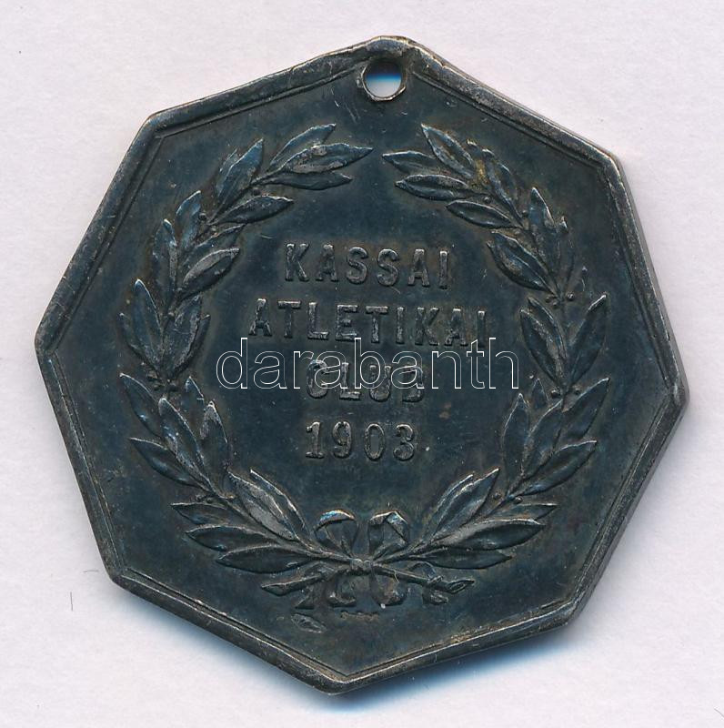 1903. "Kassai Atletikai Club 1903 / Ép ész edzett testben él" jelzett Ag sport emlékérem, "SGA" gyártói és fémjellel (21,39g/0.800/40mm) T:AU,XF fülhiány, ly.