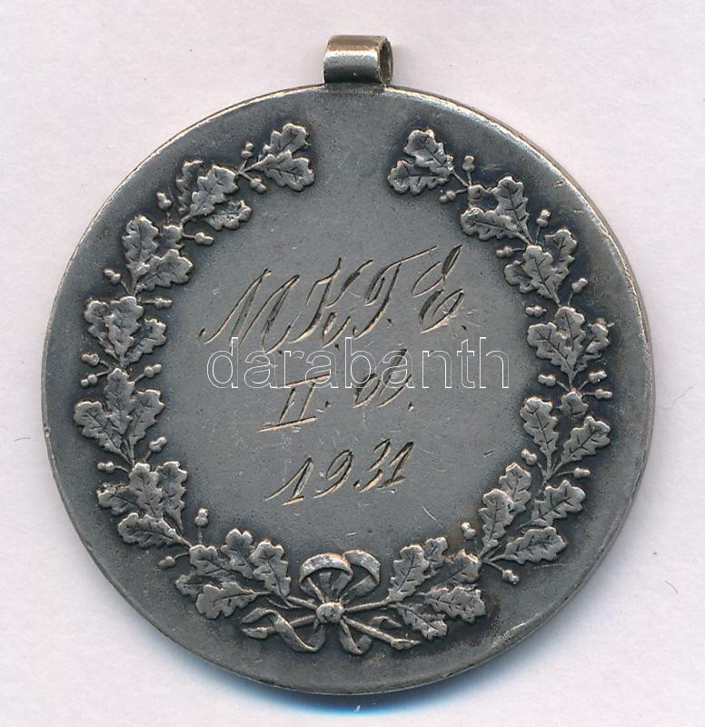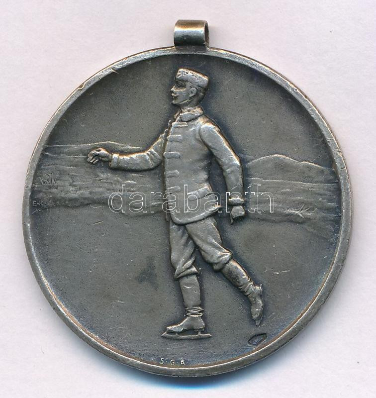 Exner Károly (1850-1919) 1931. Korcsolyázó sportérem füllel, szalag nélkül, "S.G.A. (Scheid ezüstáru és éremgyár)" gyártói és fémjellel, hátoldalán gravírozva (19,55g/0.800/36mm) T:AU,XF