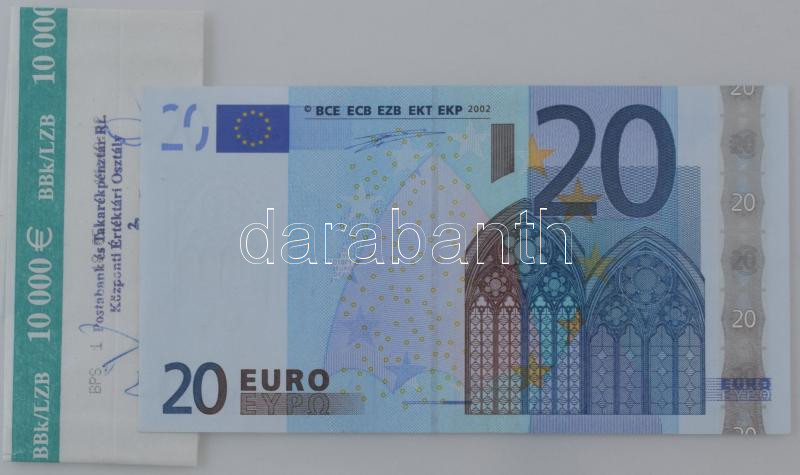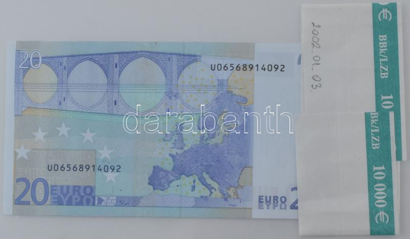 European Union / Germany 2002. 20 Euro "U" + 2002. "Postabank és Takarékpénztár Rt." currency strap about 10.000 Euro C:UNC