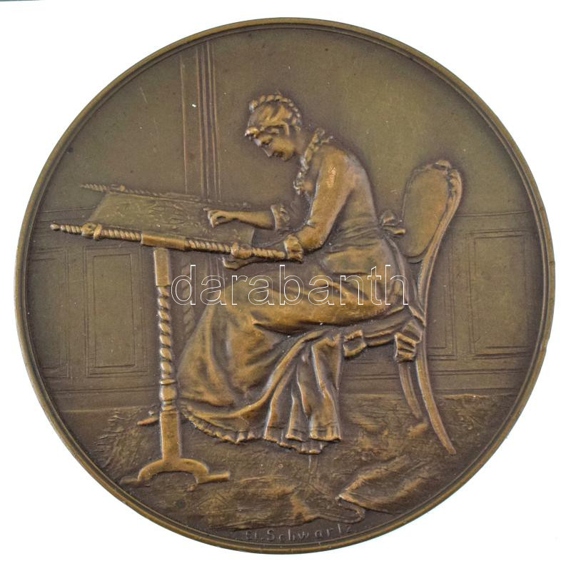 Ausztria 1910. "Preis-concurrenz der Wiener Mode für Weibliche Handarbeiten 1910 (A Bécsi Divatverseny női kézimunkáért járó díjérme)" kétoldalas bronz díjérem. Szign.: Schwartz István (61,5mm) T:AU,XF kis ph-k., ü.