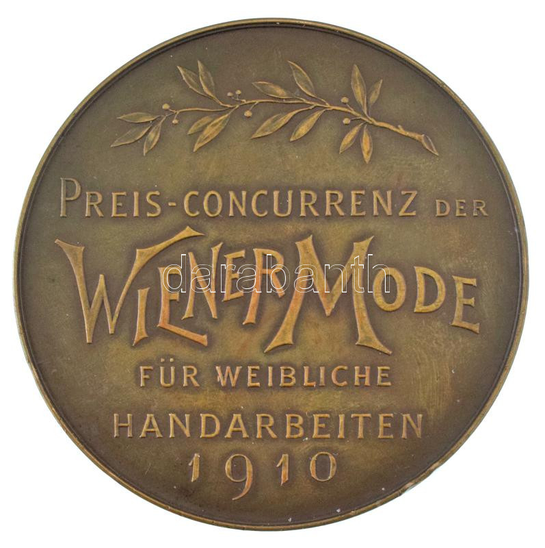 Austria 1910 "Preis-concurrenz der Wiener Mode für Weibliche Handarbeiten 1910 (Award medal for women's handwork of the Vienna Fashion Competition)" double sided bronze award medal. Sign: Stefan Schwartz (61,5mm) C:AU,XF small edge errors, ding