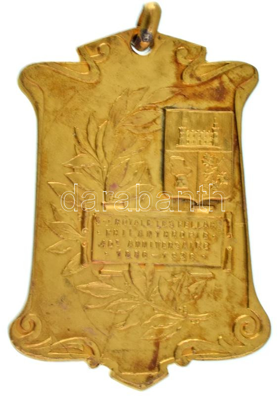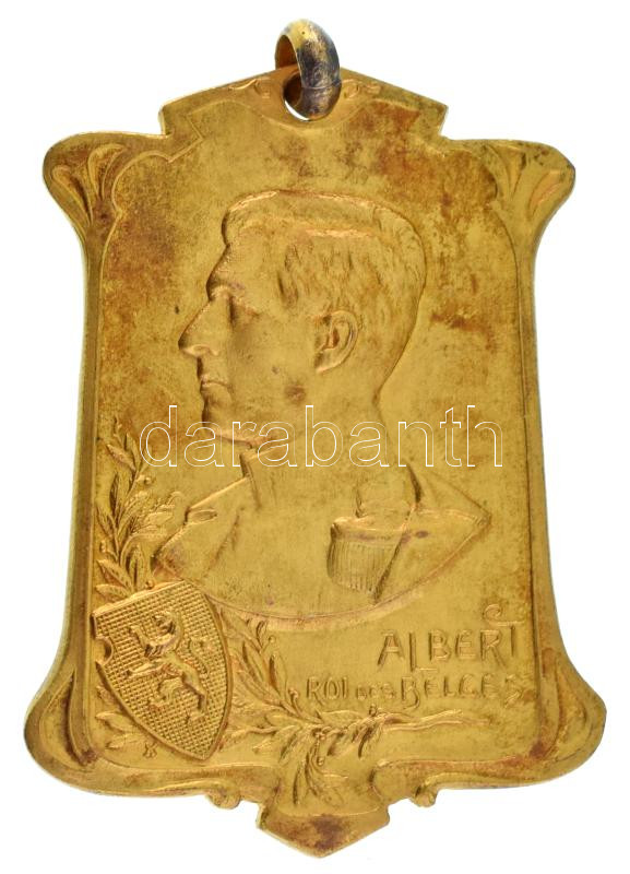 Belgium 1926. "Albert király / Santé Royale les Fellahs Philanthropie 40. évfordulója 1886-1926" aranyozott plakett füllel (50x66mm) T:XF