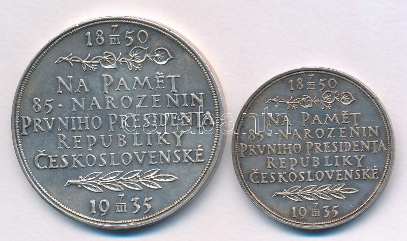 Csehszlovákia 1935. "Tomas G. Masaryk elnök 85. születésnapja" Ag emlékérem, peremén jelzett. Szign.: O. Spaniel (14,83g/0.987/32mm) + Tomas G. Masaryk elnök 85. születésnapja" Ag emlékérem, peremén jelzett. Szign.: O. Spaniel (29,66g/0.987/32mm) T:AU,XF patina Czechoslovakia 1935. "85th Anniversary - Birth of Tomas G. Masaryk" Ag commemorative medallion, hallmark on the edge. Sign.: O. Spaniel (14,95g/0.987/32mm) + Tomas G. Masaryk elnök 85. születésnapja" Ag emlékérem, peremén jelzett. Szign.: O. Spaniel (29,66g/0.987/32mm) C:AU,XF patina