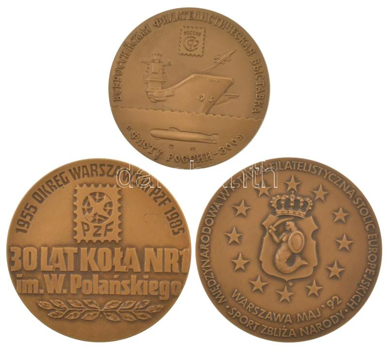 Vegyes 3db-os lengyel és orosz, bélyeggyűjtéssel kapcsolatos plakett tétel T:UNC,AU