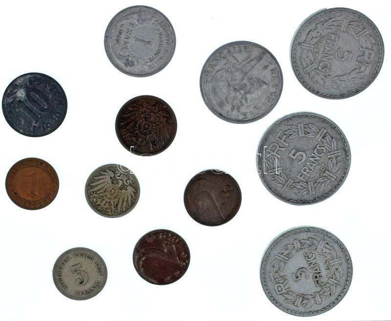 Description: 12db-os vegyes, német, francia, osztrák és szerb érme, közte 1897G 5pf Cu-Ni T:XF-F