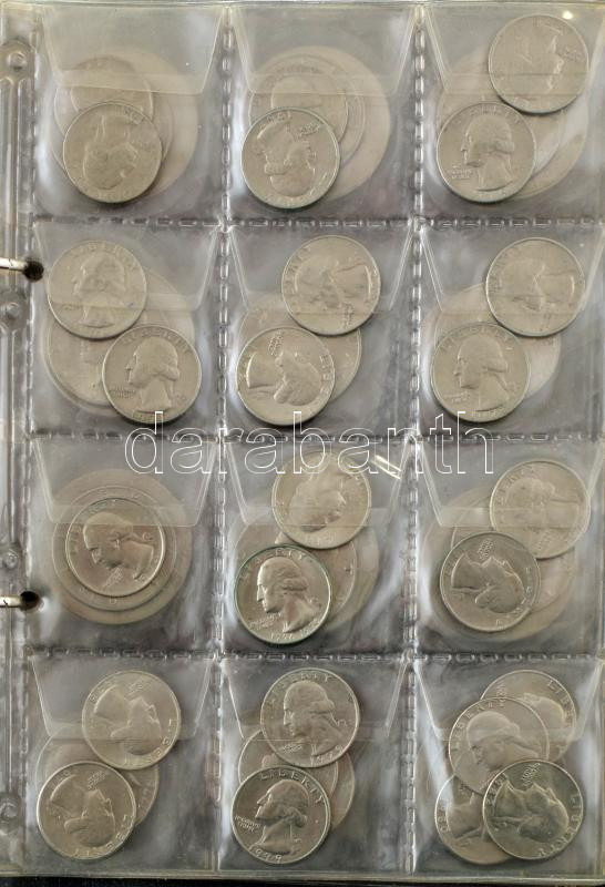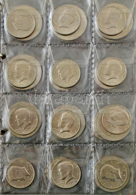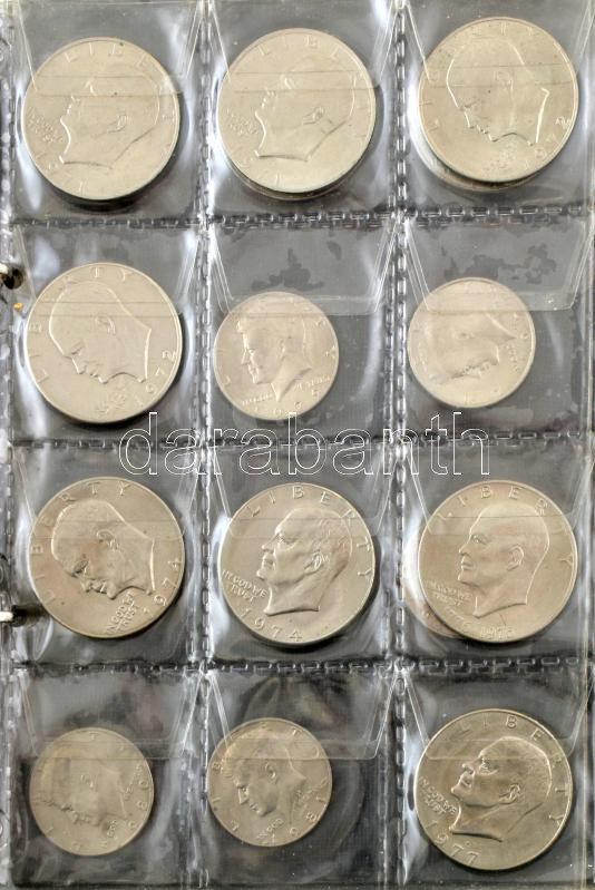 Amerikai Egyesült Államok 1971-1982. 1/4$ Cu-Ni "Washinton" (26db) + 1/2$ Cu-Ni "Kennedy" (20db) + 1$ Cu-Ni Eisenhower" (10db) + 1979. 1$ Cu-Ni "Susan B. Anthony" + DN "New York" sárgaréz tömegközlekedési zseton, albumba rendezve T:UNC-VF