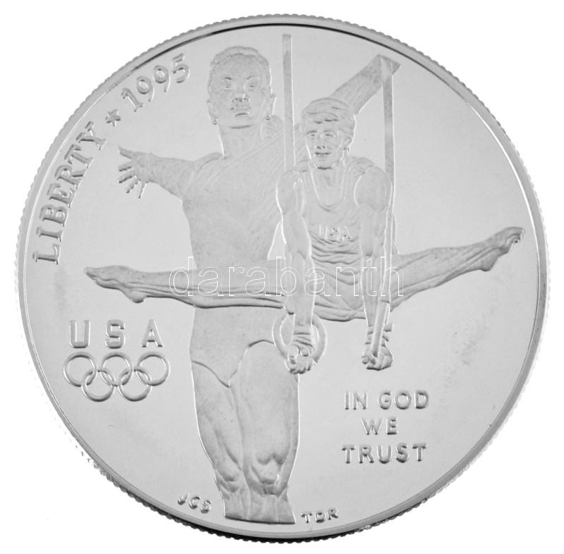 Description: Amerikai Egyesült Államok 1995P 1$ Ag "Atlantai Olimpia 1996 - Torna" kapszulában T:PP patina /