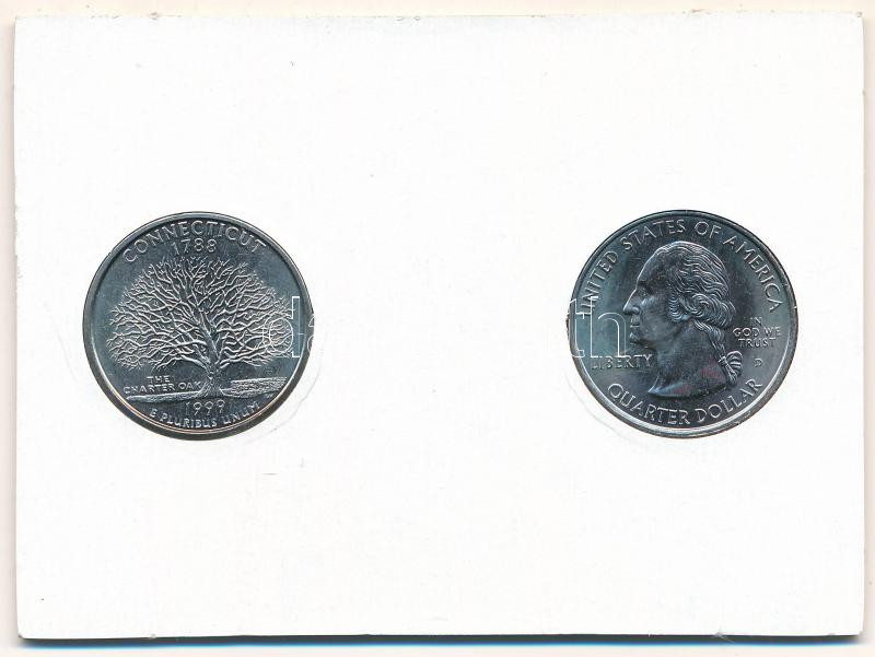 Amerikai Egyesült Államok 1999P 1/4$ Cu-Ni "Connecticut" (2d... https://www.darabanth.com/en/469-Online-auction/469.0/Numismatics/Worldwide-silver-and-metal-coins~2000016/Amerikai-Egyesult-Allamok-1999P-14USD-Cu-Ni-Connecticut-2db-karton-diszlapon-TUNC-patina-USA~II3099826