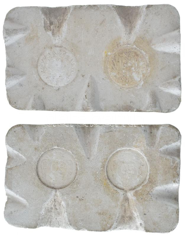 Description: Ausztria DN (~1892-1914) 2 darabból álló gipsz öntőminta az osztrák 20 Heller-es érméhez (~53x87mm) T:VF,F