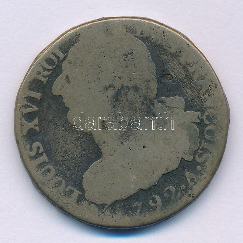 Franciaország 1792A 2S Br "XVI. Lajos" T:F,VG France 1792A 2...