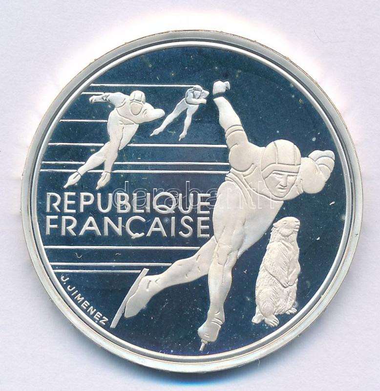 Franciaország 1990. 100Fr Ag "XVI. Téli Olimpia - Albertville 1992 - Gyorskorcsolya" T:PP ujjlenyomat, kis folt