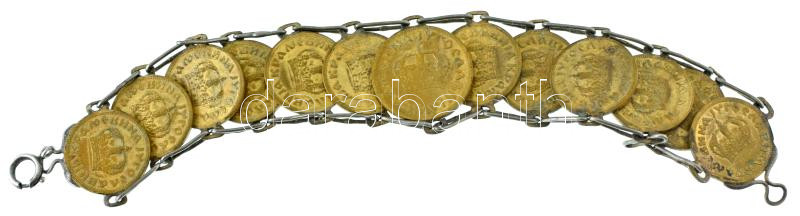 Yugoslavia 1938. 50 Para Al-bronze (12x) + 1 Dinar Al-bronze, gilt, refurbished to a bracelet C:XF,VF worn gilt