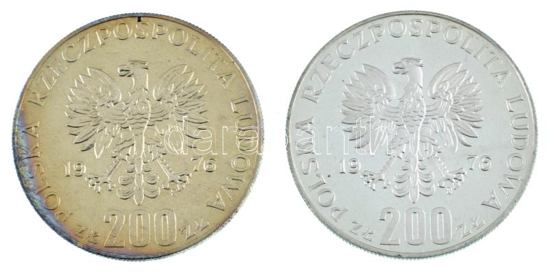 Description: Lengyelország 1976. 200Zl Ag "XXI. Olimpia / Nagy olimpiai láng" (2xklf), egyik "PRÓBA" feliratú próbaveret T:PP, AU patina /