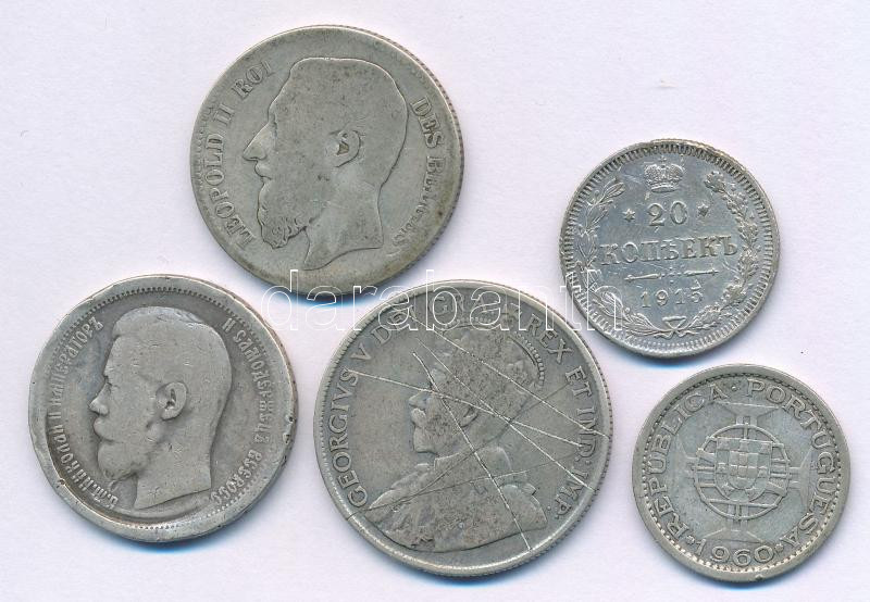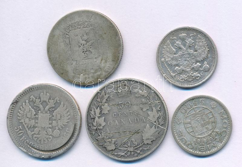 Description: Vegyes, 5db-os külföldi Ag érmetétel, közte Orosz Birodalom 1896. 50k T:F,VG