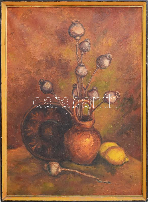 Jelzés nélkül: Mákgubók. Olaj, vászon, fakeretben. 66×48 cm
