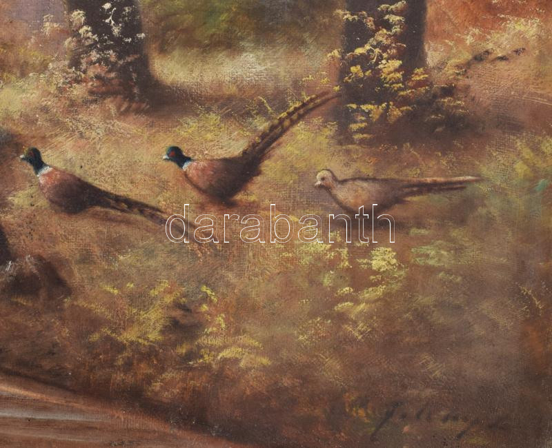 Olvashatatlan jelzéssel: Fácánok az erdőben. Olaj, vászon. Sérült. 60x...