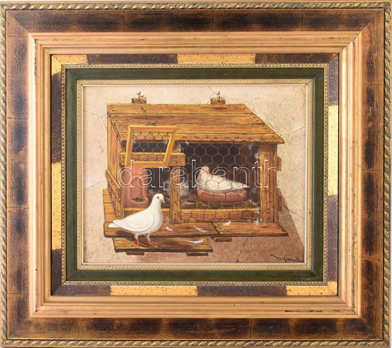 Olvashatatlan jelzéssel: Fehér galambok. Olaj, vászon. Dekoratív fakeretben. 33,5x41,5 cm