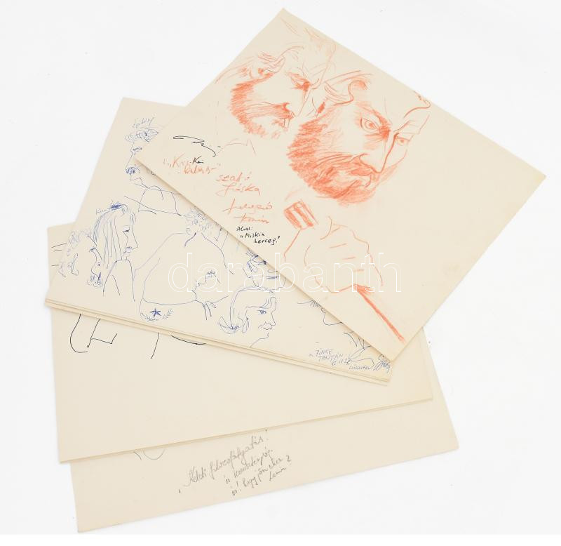 Olvashatatlan jelzéssel vagy jelzés nélkül: 8 db portré vázlatrajz. Klf. technikák, papír, 30x43 cm.