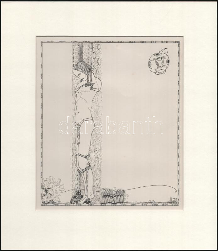 Kozma Lajos (1884-1948): Gúzsba kötve. Cinkográfia, papír, jelzett a cinkográfián, paszpartuban, 20×17 cm