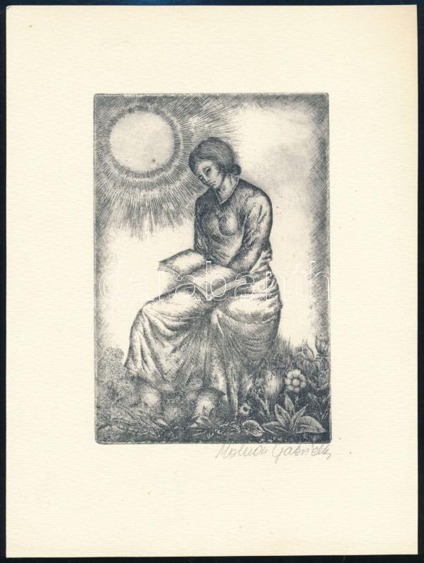 Molnár Gabriella (1940-): Olvasó lány. Rézkarc, papír, jelzett, 15x10 ...