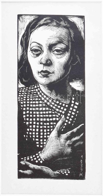 Varga Mátyás (1910-2002): Női portré, 1935. Fametszet, papír, jelzett ...