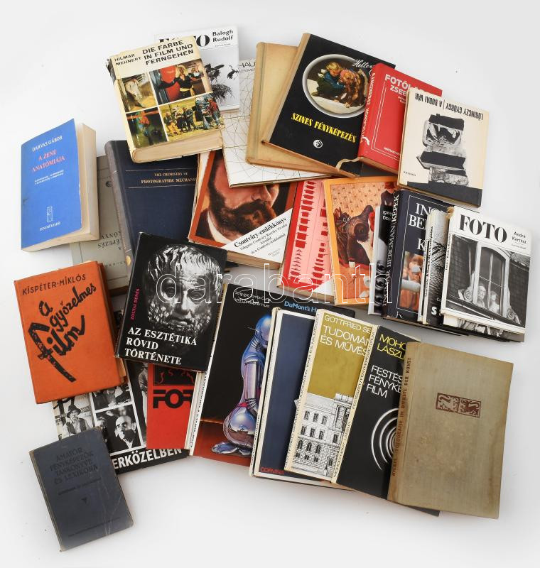 Nagy fotós és filmes könyv tétel: a fotózás művészetével technikájával, kompozíció filozófiájával, esztétikájával foglalkozó könyvek, valamint filmes szakkönyvek. Óriási anyag két ládában