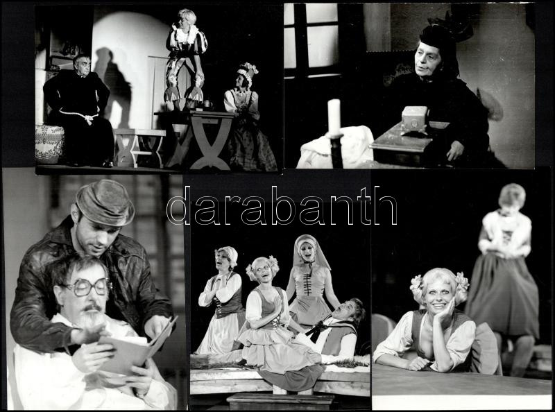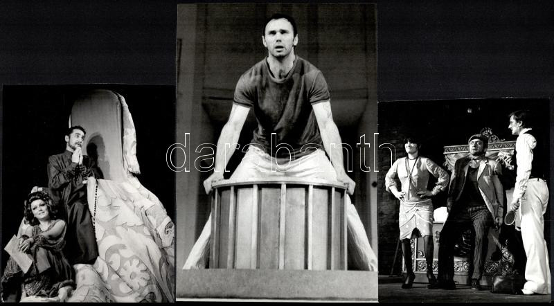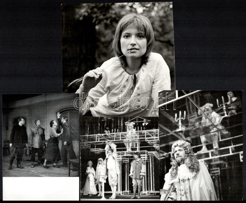 Színházi jelenetfotók, 13 db, Huszti Péter, Schütz Ila, Körmendi János, Esztergályos Cecília, Moór Marianna, Drahota, Kútvölgyi, Koncz Gábor, Voigt Ági, Fülöp Zsigmond, Sulyok Mária, jelzettek, vegyes méretben