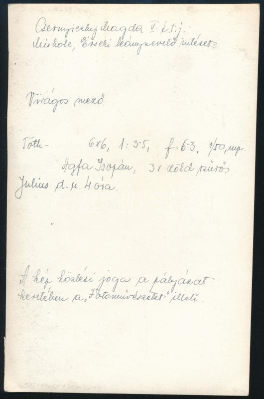 cca 1940 Csernyiczky Magda: Virágos mező. A miskolci Érseki Leánynevel... https://www.darabanth.com/en/469-Online-auction/469.0/Photography/Photo~500023/cca-1940-Csernyiczky-Magda-Viragos-mezo-A-miskolci-Erseki-Leanynevelo-Intezet-novendekene~II3175839