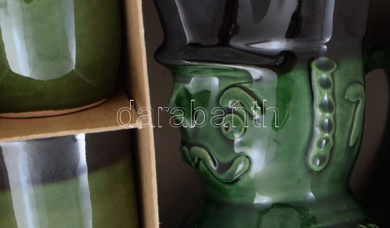 Dél-Alföldi miskakancsós boros készlet, dobozában, m: 19,5 cm alatt