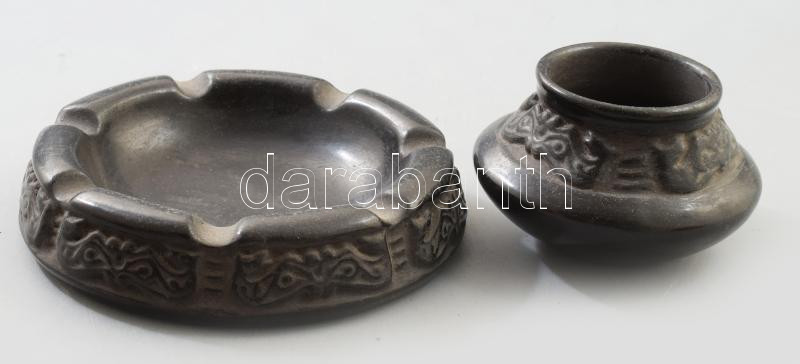 Dósa Pardy Szentes 2 darab feketekerámia tárgy, jelzett, kis kopással,...