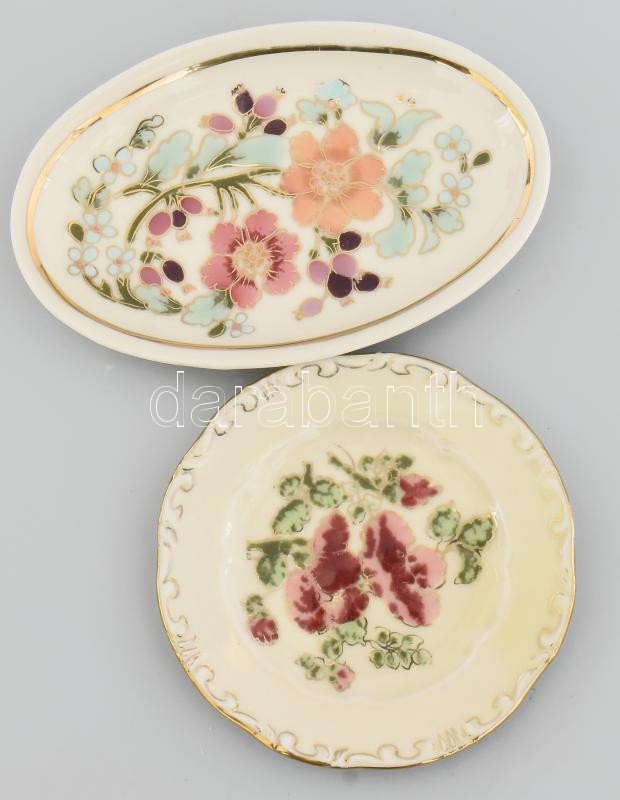 2 db Zsolnay virág mintás tálka. Kézzel festett, jelzett, hibátlan 8-11 cm
