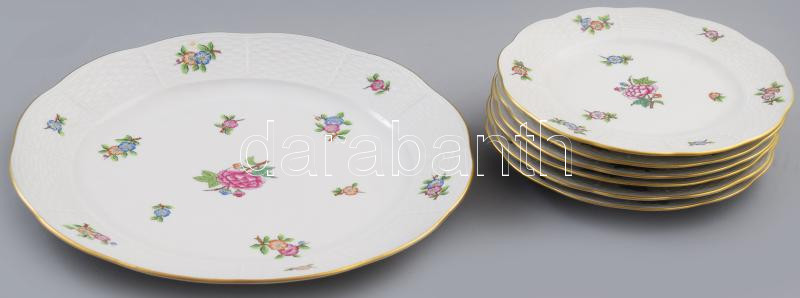 Herendi Eton mintás süteményes készlet. Hat személyes. Kézzel festett, jelzett, hibátlan d: 16 cm, 26 cm