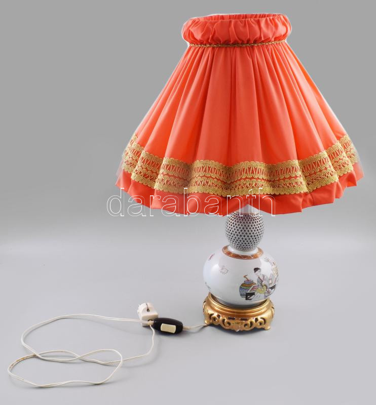 Herendi Ming mintás kínai tök alakú kézzel festett, áttört asztali lámpa. Jelzett, minimális kopással, m: 60 cm