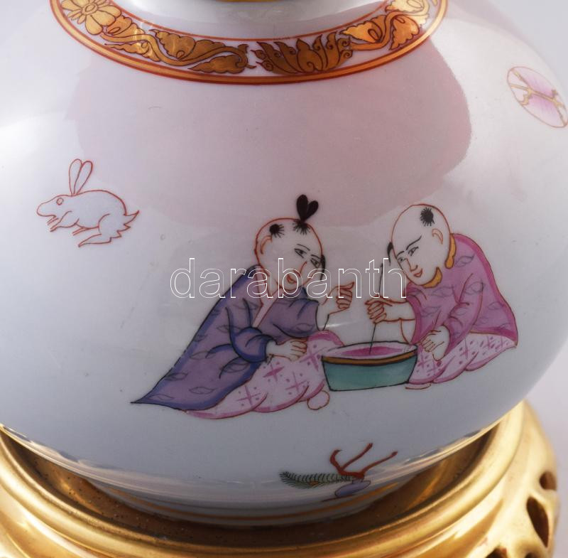 Herendi Ming mintás kínai tök alakú kézzel festett, áttört asztali lám...