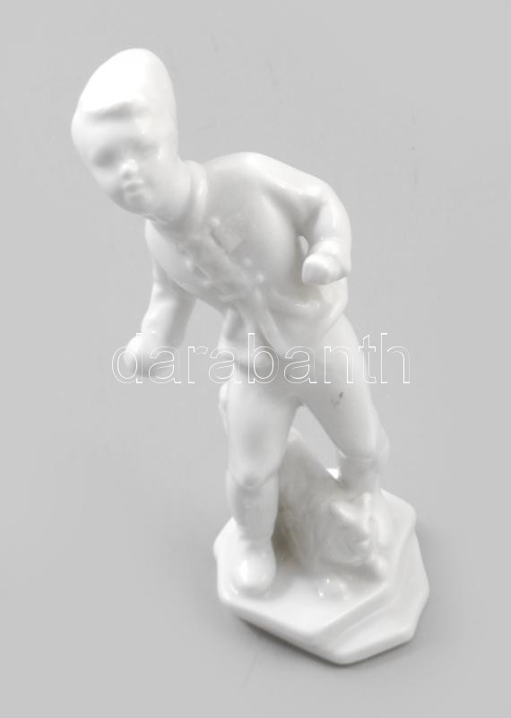 Herendi fiú cicával. Jelzett, fehérmázas, hibátlan, m: 12,5 cm
