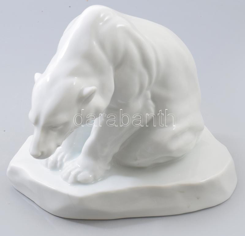 Herendi nagy méretű jegesmedve szobor. Jelzett (Markup Béla 1927), Kéz...