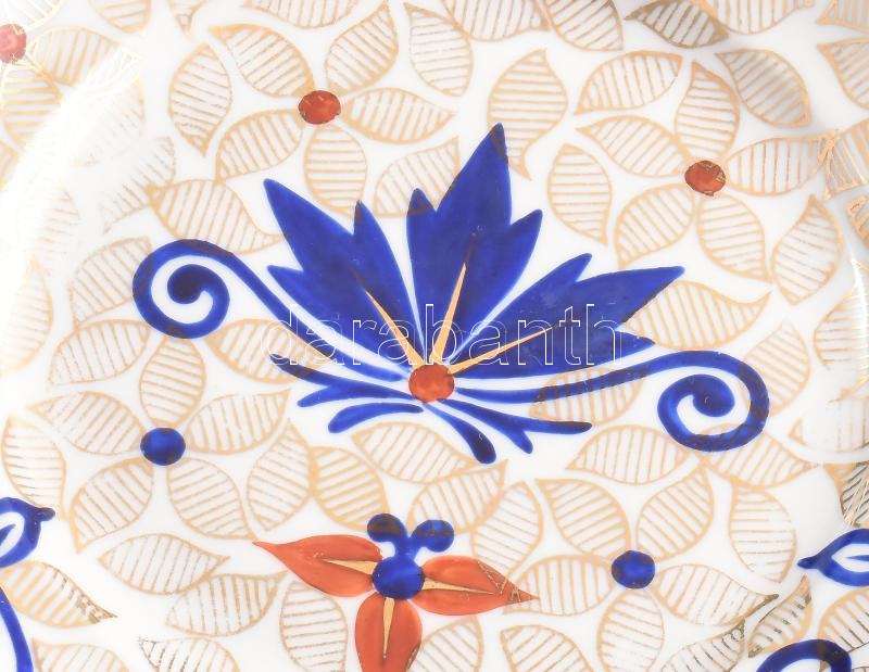 K.M.K. porcelán süteményes készlet hat személyes. Kézzel festett, aran...