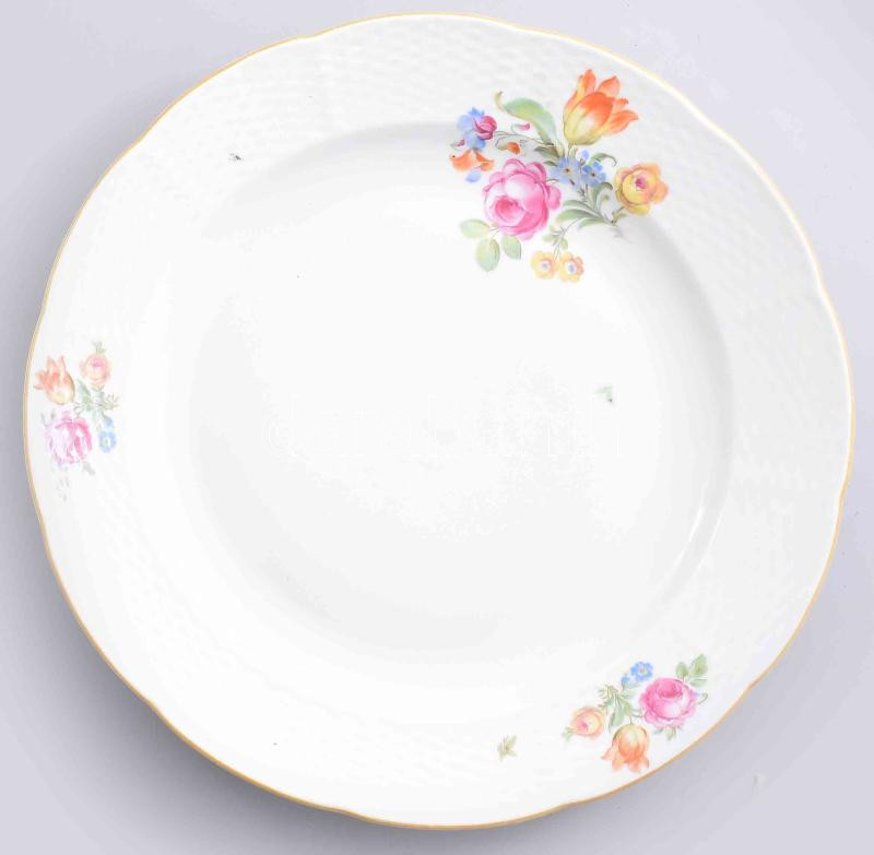 Meisseni Teichert (Meißen Ofen- und Porzellanmanufaktur 1882-1932) kínáló. Jelzett, minimális kopással, d: 27,5 cm
