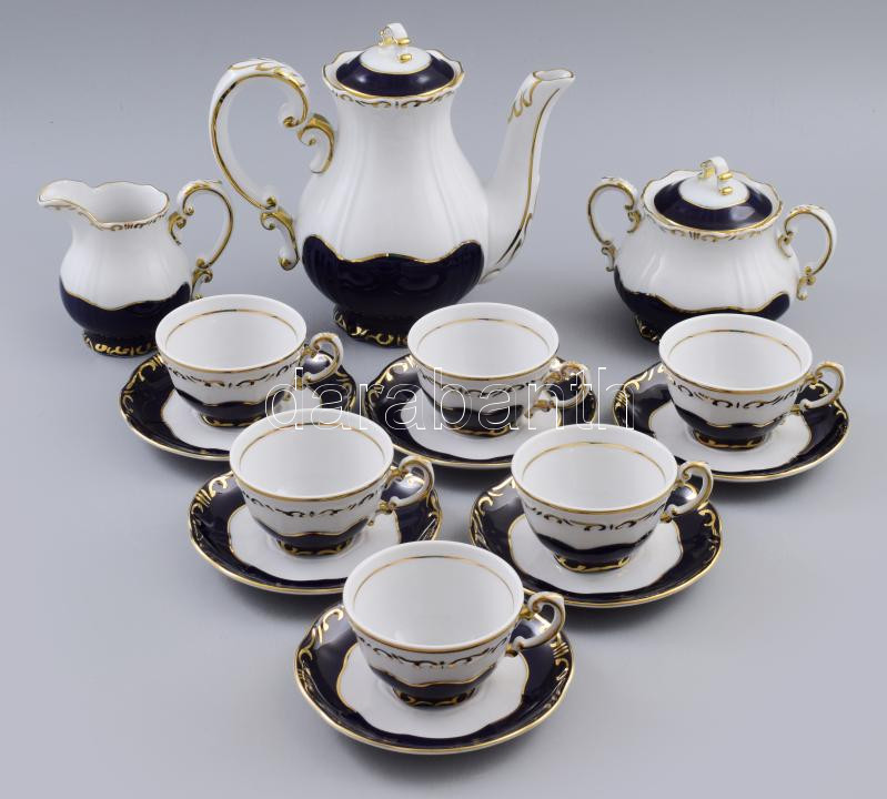 Zsolnay Pompadour mintás kávés készlet, teljes, jelzett, hibátlan.