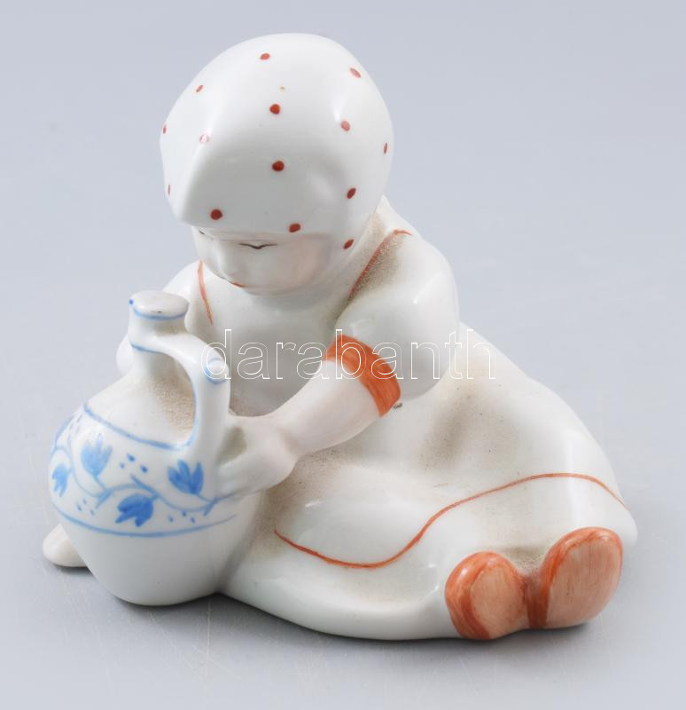 Zsolnay korsós lányka, kézzel festett, jelzett, hibátlan, m: 7,5 cm