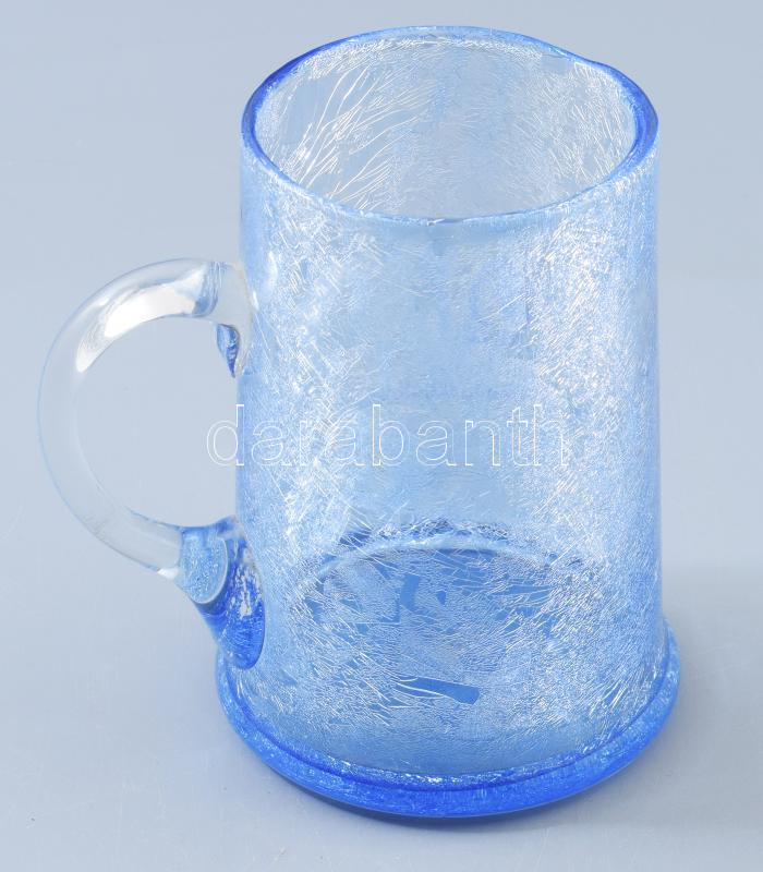 Karcag Berekfürdői korsó. Kéken színezett krakléüveg, TIGÁZ márkajelzé...