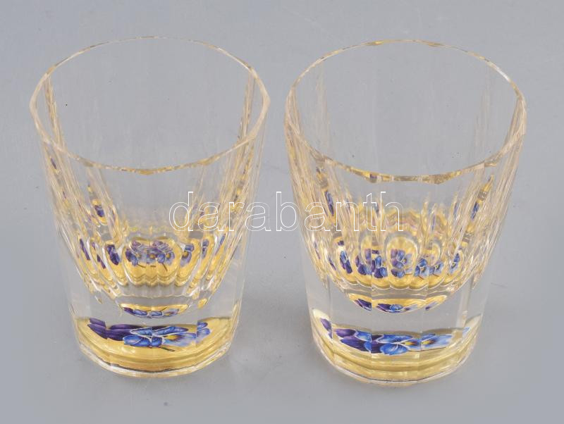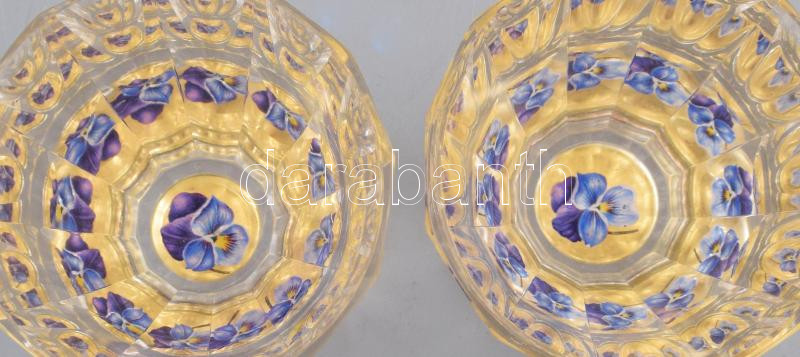 cca 1900 Bohemia 2 darab ún. kaleidoszkóp pohár. Alján festett mintás ...