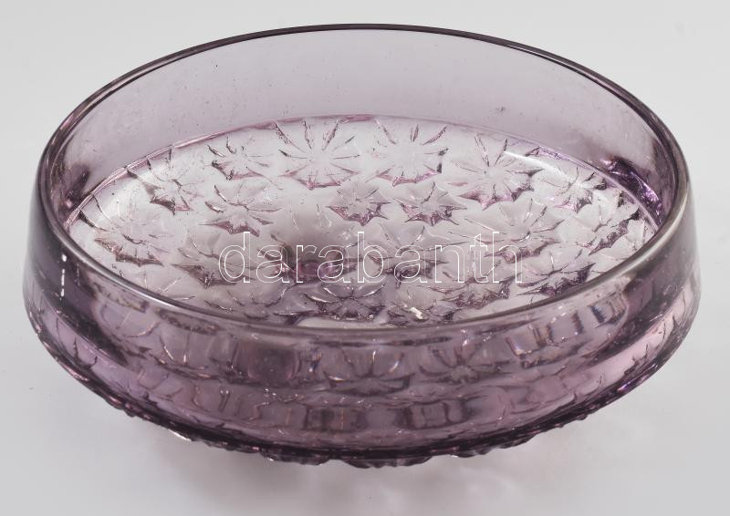 cca 1970 Jiri Brabec Sklo Union kínáló, formába préselt lila üveg, jelzés nélkül, hibátlan, d: 23 cm, m: 9 cm