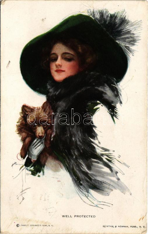 1912 Well Protected / Lady art postcard with dog. Reinthal & Newman No. 180. s: Harrison Fisher (fa)