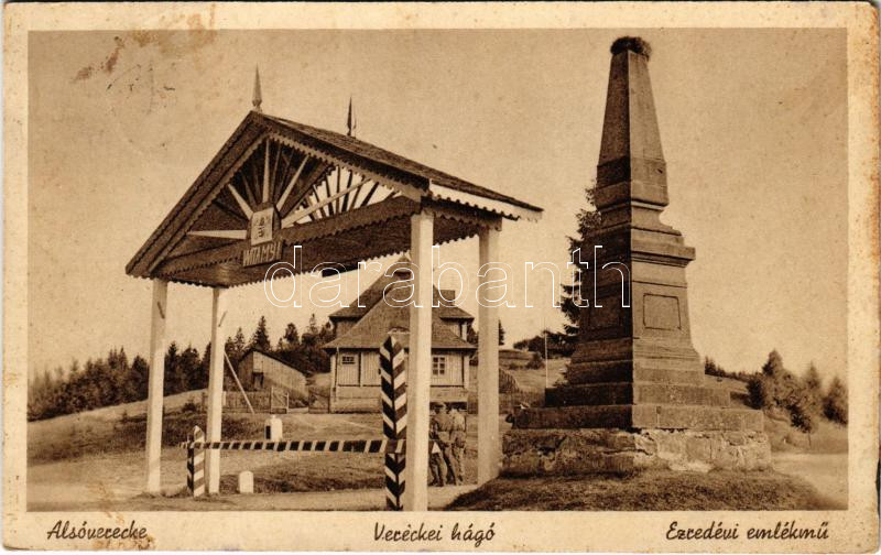 1941 Alsóverecke, Niznije Verecki, Nizsnyi Vorota, Nyzhni Vorota; Vereckei hágó, Ezredévi emlékmű / Verecke Pass, monument (r)