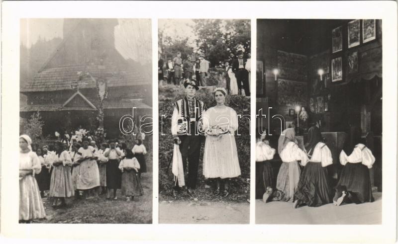 Terebesfejérpatak, Terebes (Trebusa), Dilova, Dilove (Máramaros); Görögkatolikus fatemplom, mise után, Ruszin vőlegény és menyasszony. Turul fotóriport / Greek Catholic wooden church, after mass, Rusyn (Ruthenian) folklore, groom and bride