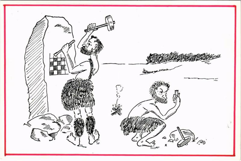 Sakk a kőkorszakban, humoros lap / Chess in Stone Age, humour