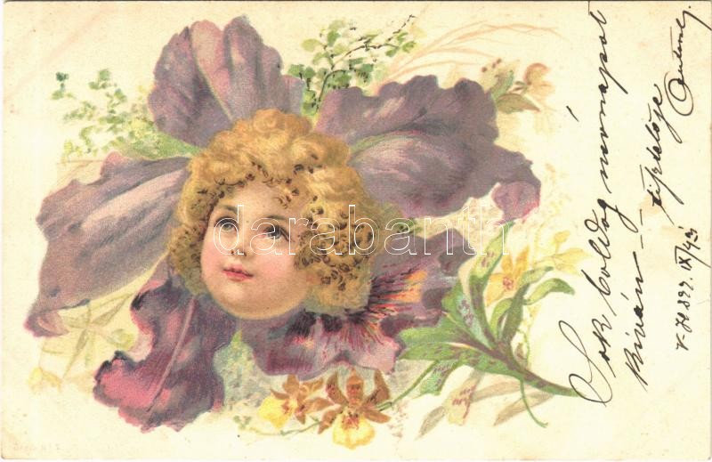 1899 Child flower art postcard. Serie No. 2. litho