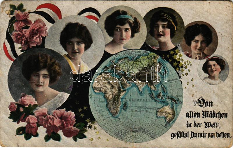 1917 Von allen Mädchen in der Welt, gefällst Du mir am besten / Német romantikus üdvözlet / German romantic greeting (holes)
